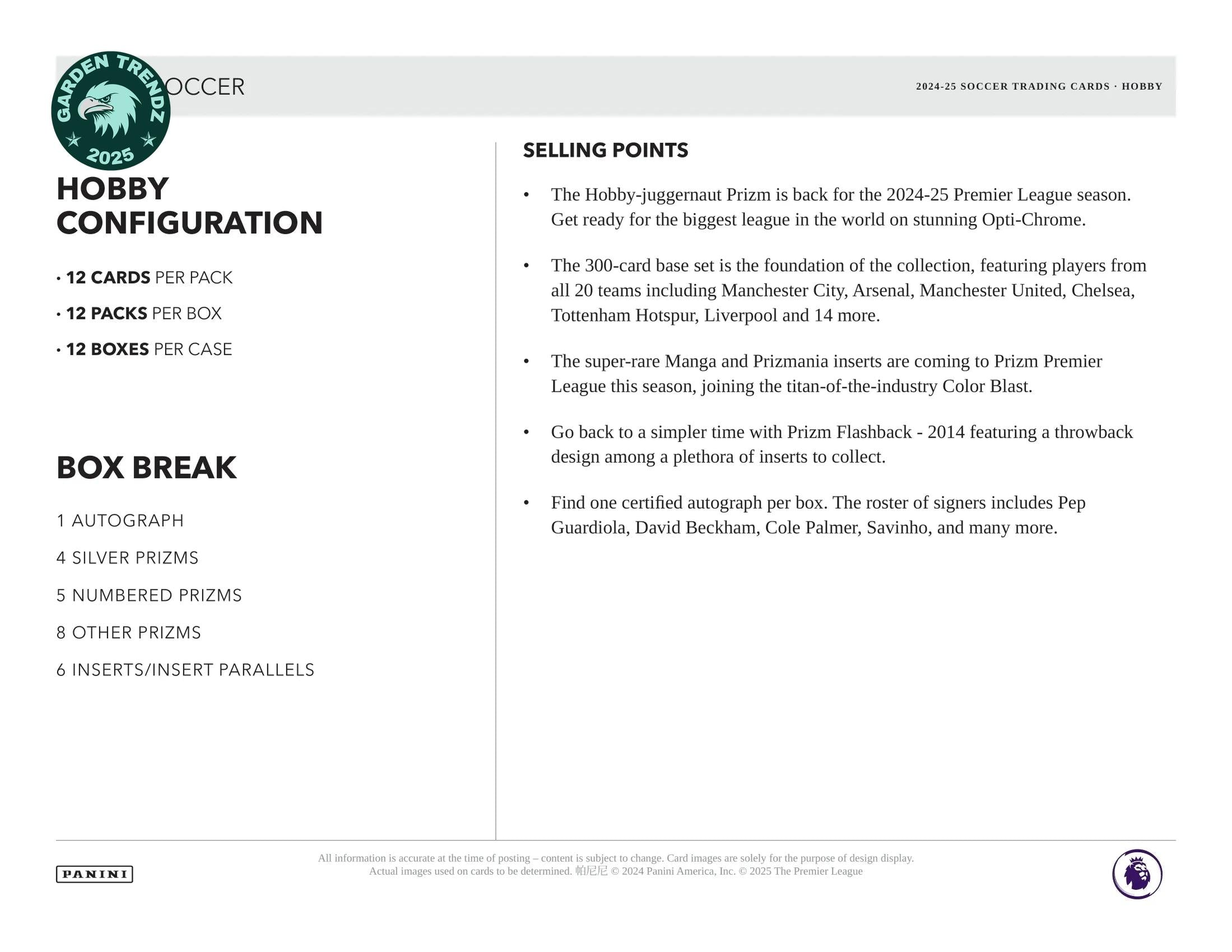 2024-25 Panini Prizm English Premier League Soccer Cards PRODUCT HIGHLIGHTS: