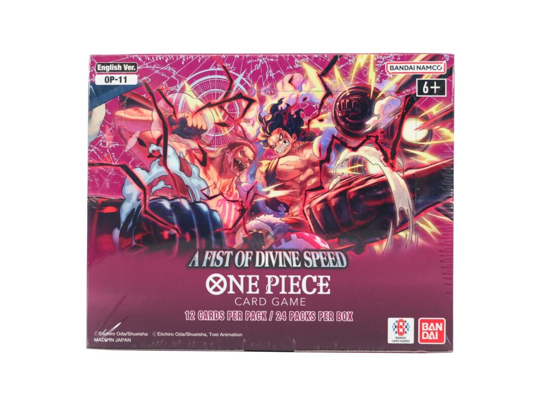 £13.00 – £3,385.00Price range: £13.00 through £3,385.00One Piece TCG: A Fist of Divine Speed (OP-11) Booster